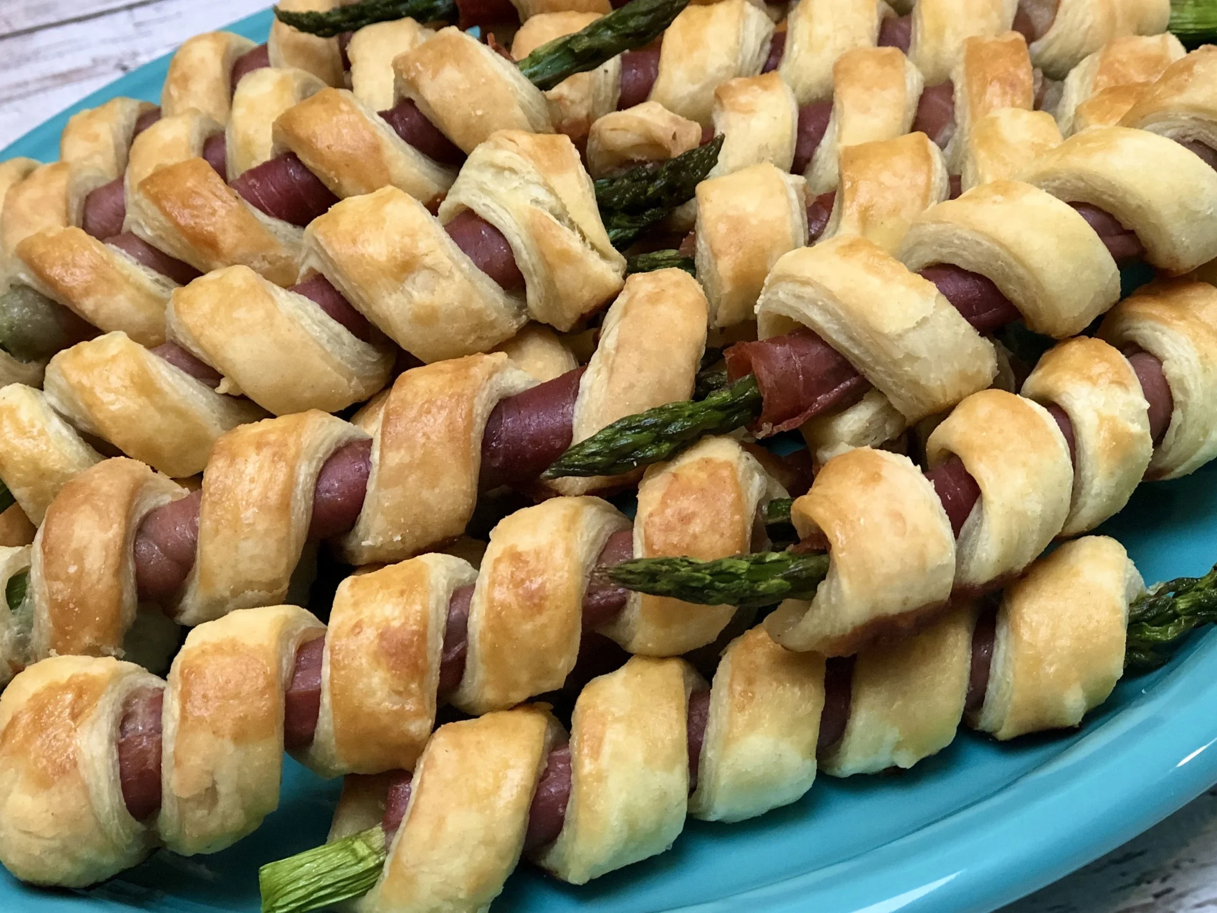The name is a mouthful, and they might look complicated, but they’re really pretty simple: some prosciutto wrapped around asparagus and held together by a flaky puff pastry.