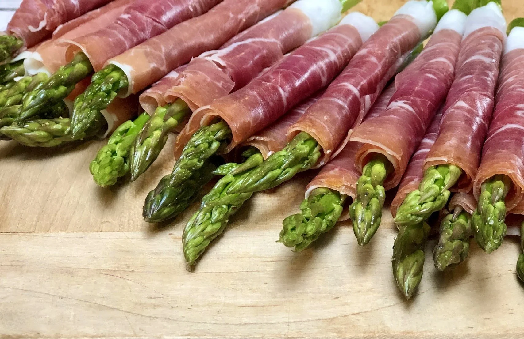 Use a high-quality soft prosciutto. If it’s too hard, it will be difficult to wrap around the asparagus without cracking.