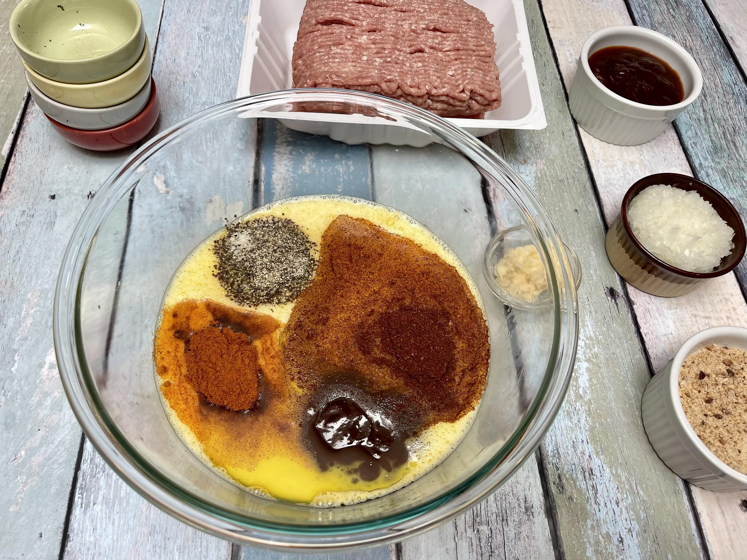 4. Add breadcrumbs, onion, and garlic to the bowl. Mix together with a silicon spatula until the ingredients are evenly combined.