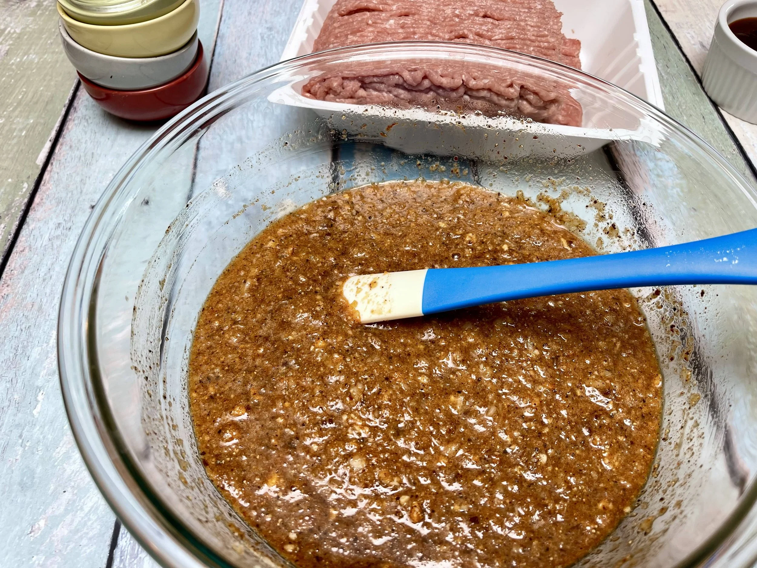 Pureeing the onion will make the meatballs super moist. In fact, this step is my secret to moist meatloaf and super yummy Urfa kebabs. If you don’t have a food processor, mince the onions really fine or grate them.