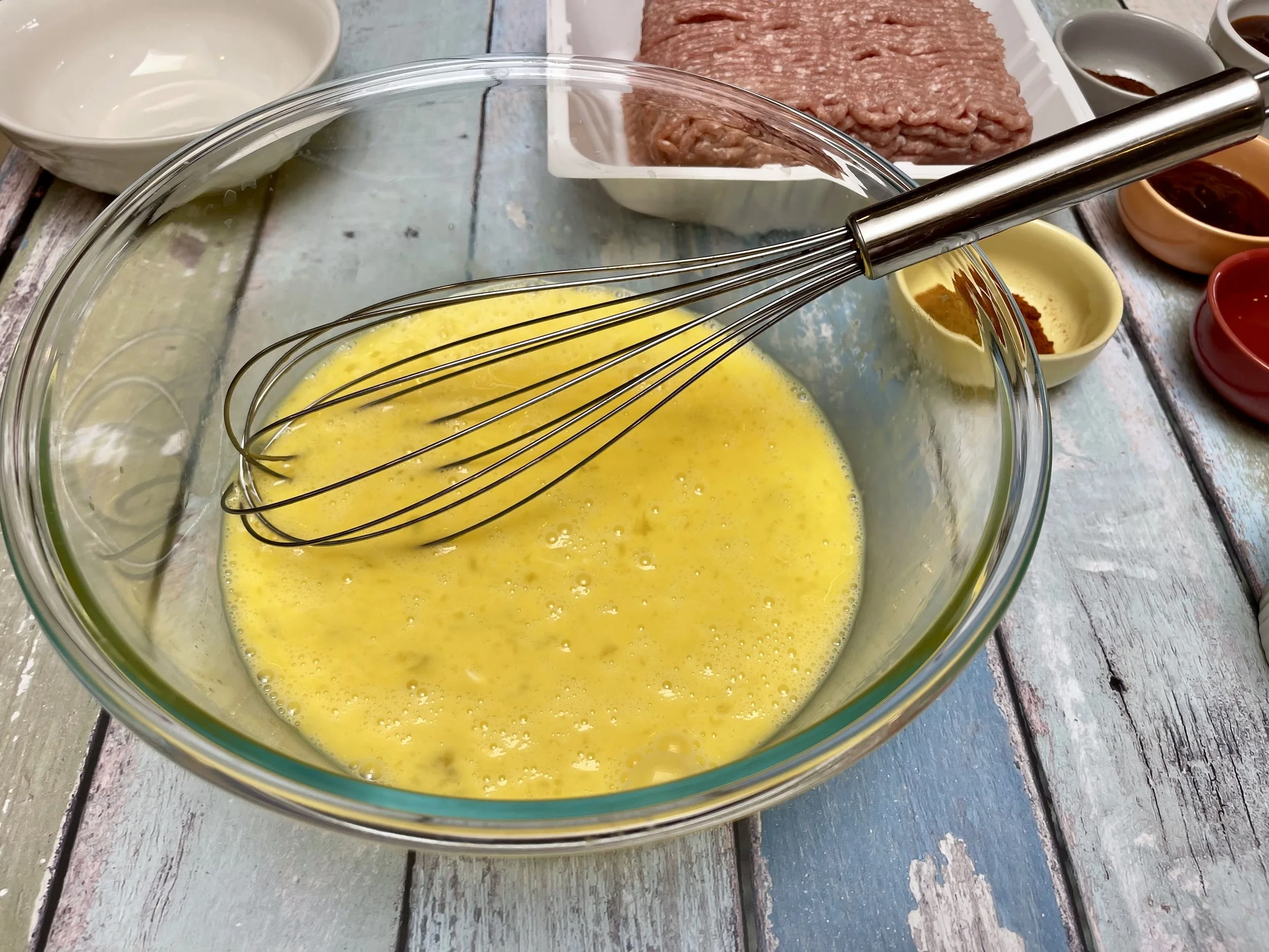 2. In a large mixing bowl, whisk the eggs together until well beaten.