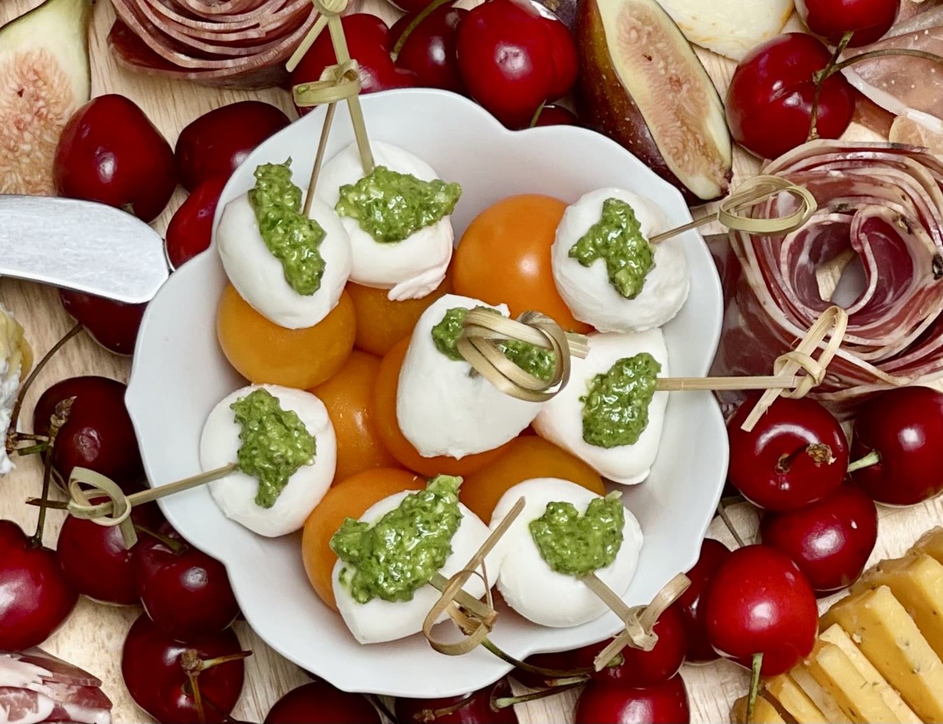 Perfect Pairings: Pesto brings a fresh, garden-like element to a board that can be heavy on rich flavors. It’s wonderful when spread on a piece of crusty bread or a water cracker with a slice of provolone, fontina, or asiago.