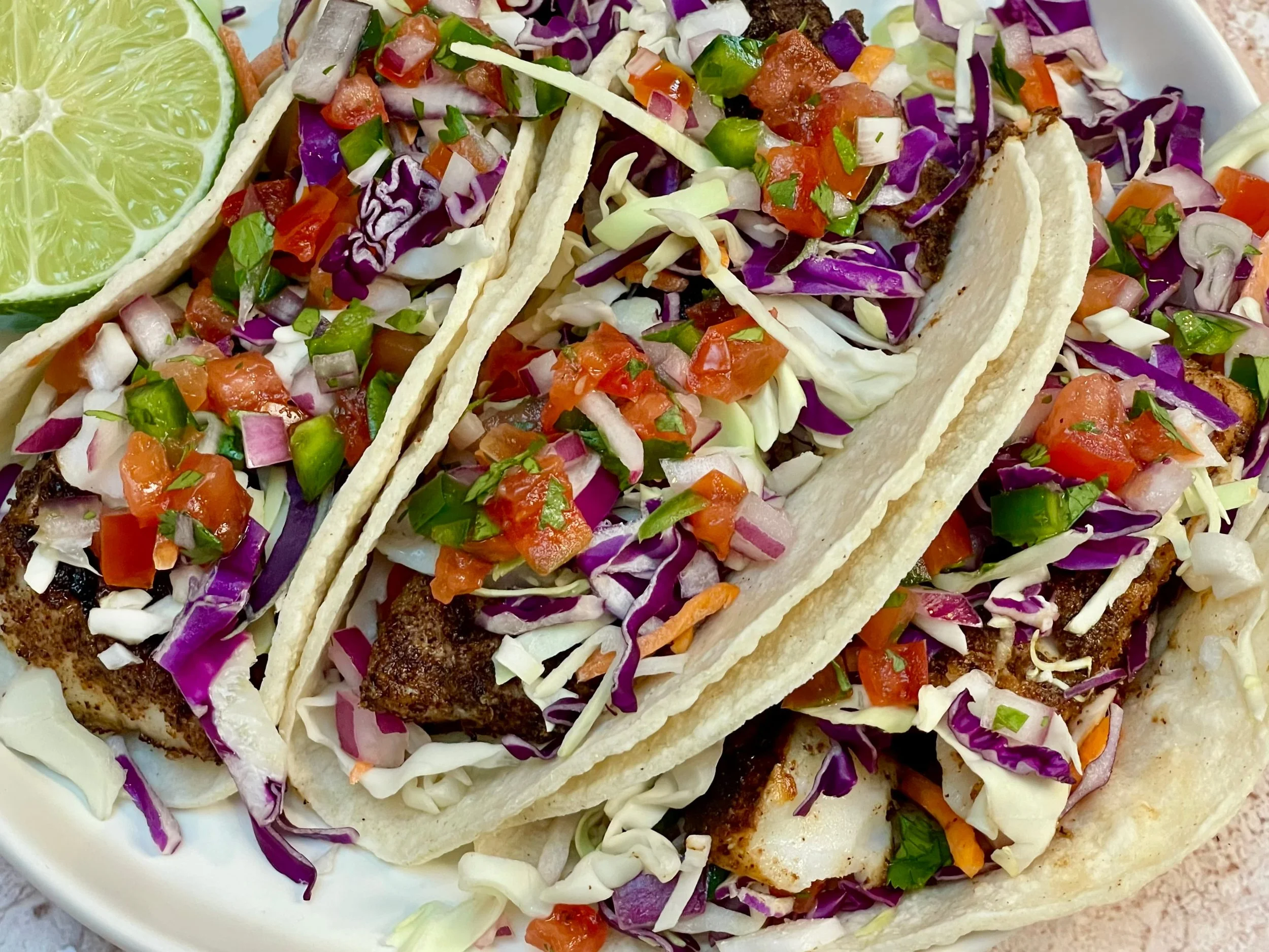 Healthy Blackened Fish Tacos with Slaw & Pico de Gallo