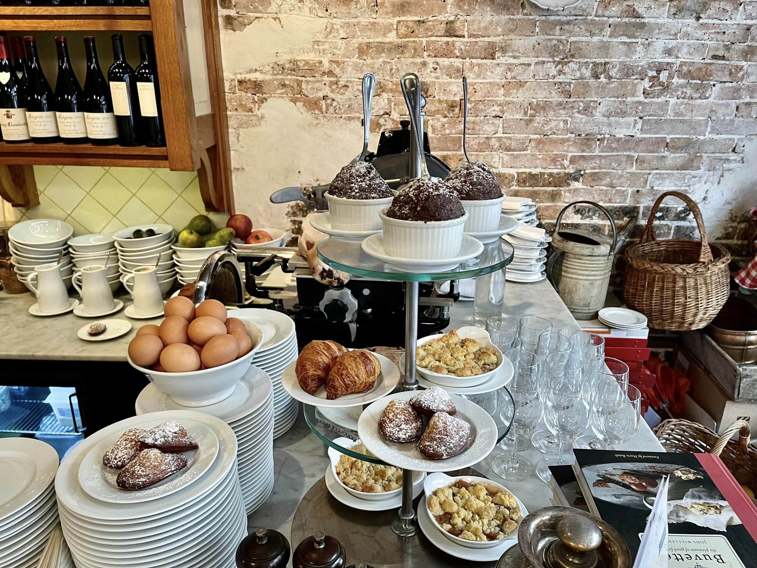 Food is more often than not an afterthought at cafés. In the morning, it’s the typical French breakfast of a coffee or tea and breakfast pastries. For lunch and dinner a croque monsieur, a salad, a sandwich, a French cheese plate, are some common options on offer.