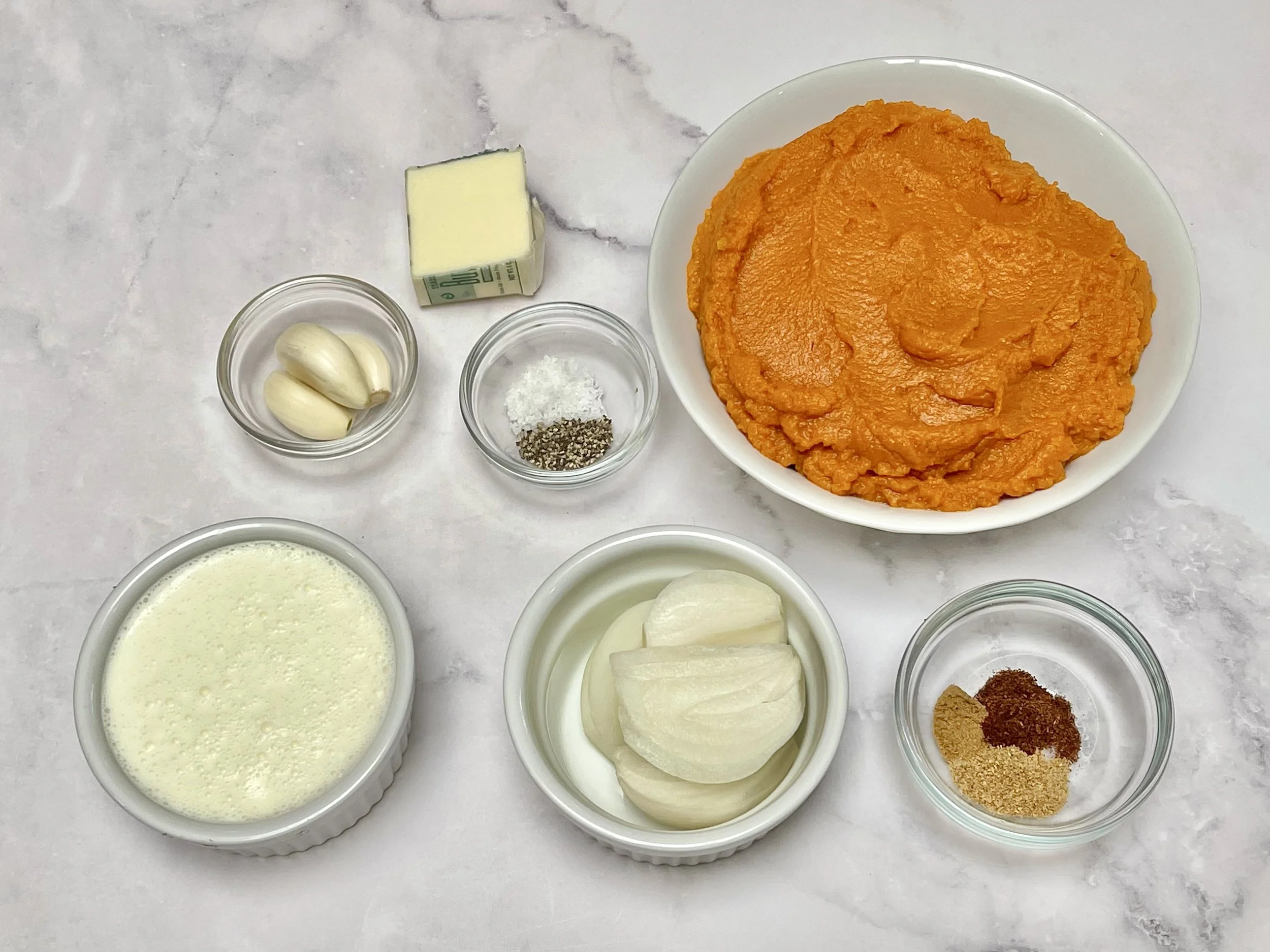 This onion-garlic duo makes for a delicious savory pumpkin soup. However, if you want something sweeter—like a typical butternut squash soup—that’s easily accomplished. Simply substitute apples or applesauce for onions and garlic, then add a tablespoon of either brown sugar or maple syrup and a teaspoon of pumpkin pie spice.