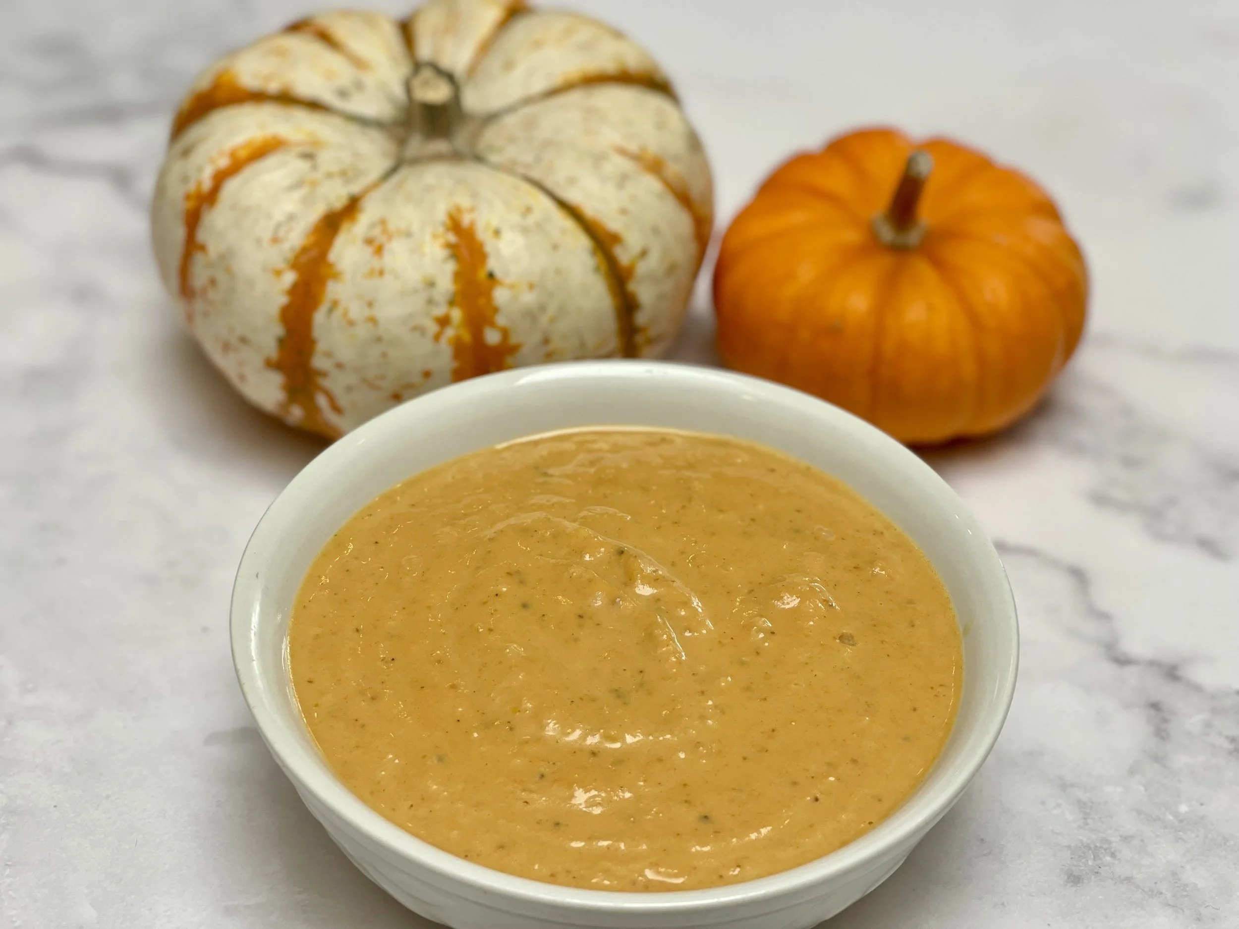 I love my pumpkin soup super creamy. But if you need to make yours non-dairy, almond milk, coconut milk, soy milk, oat milk, apple cider, chicken stock, vegetable broth, or any combo thereof are all good substitutes.