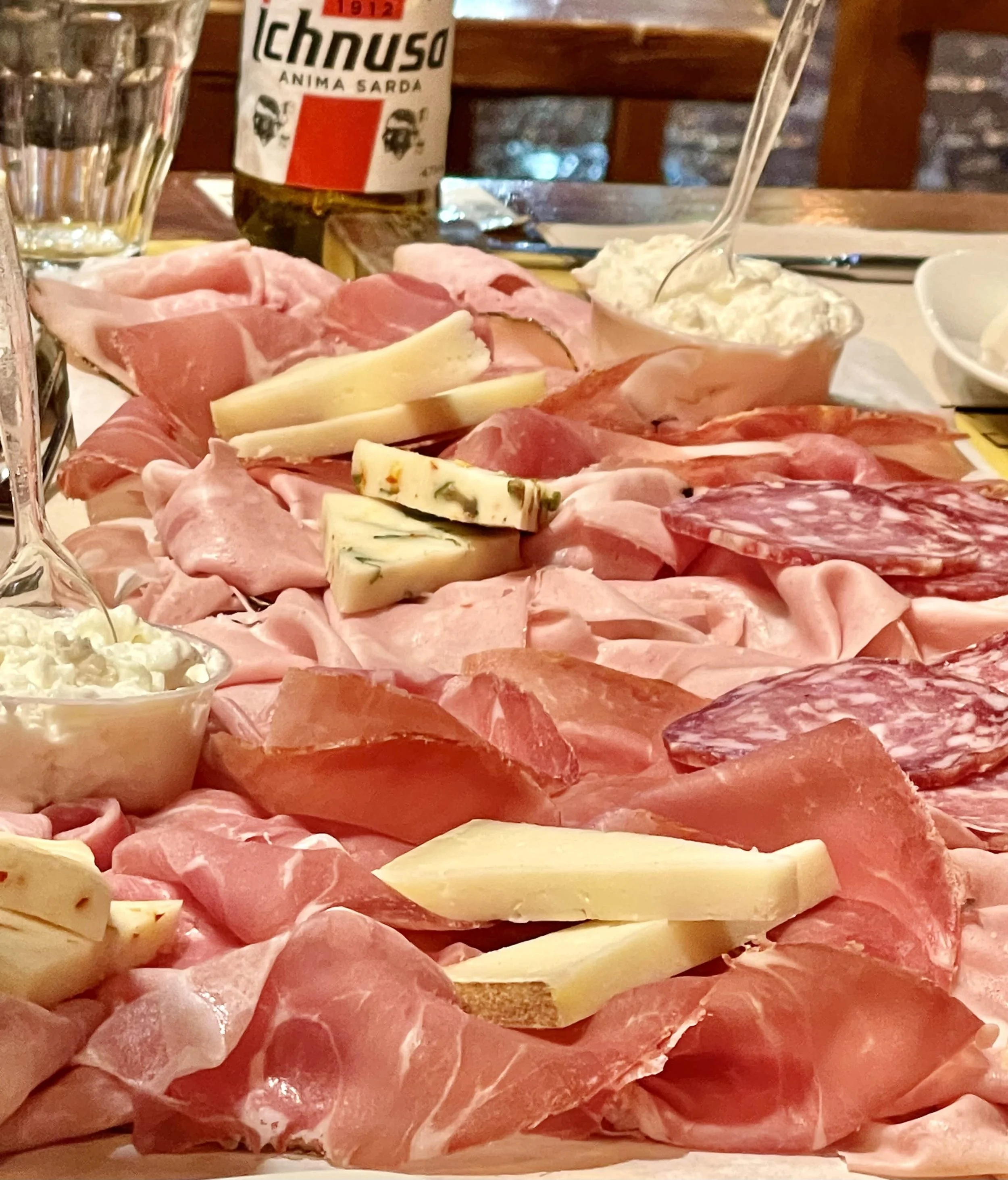 Squacquerone cheese in little bowls pairs wonderfully with Bologna salumi.