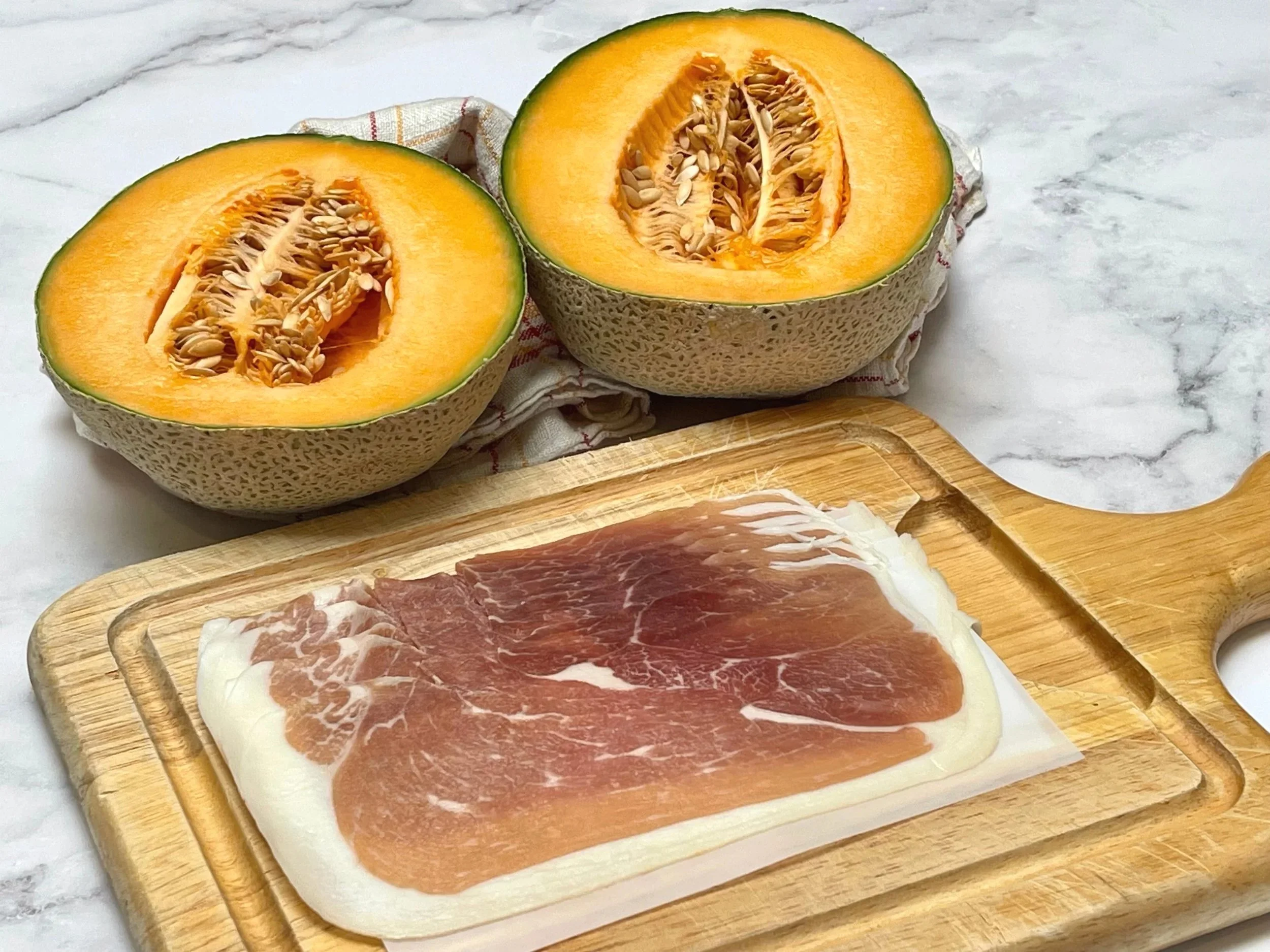 The prosciutto should be silky, delicate, and thin enough to almost melt in your mouth. If your prosciutto is hard, it will crack rather than perfectly wrap around your melon.