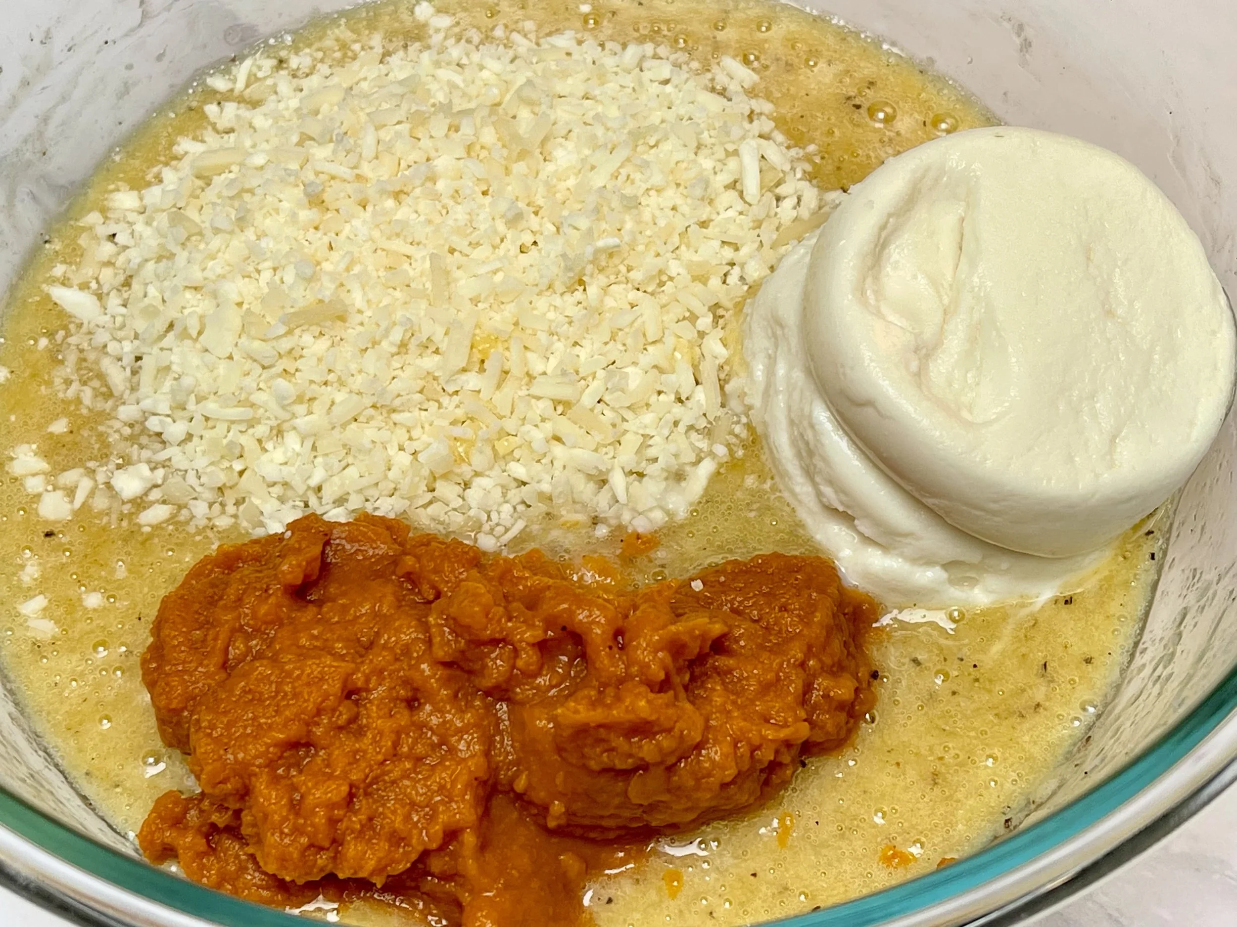 2. Stir in the pumpkin puree, ricotta cheese, and parmesan until the mixture is smoothish. Don’t worry if you have some small lumps.