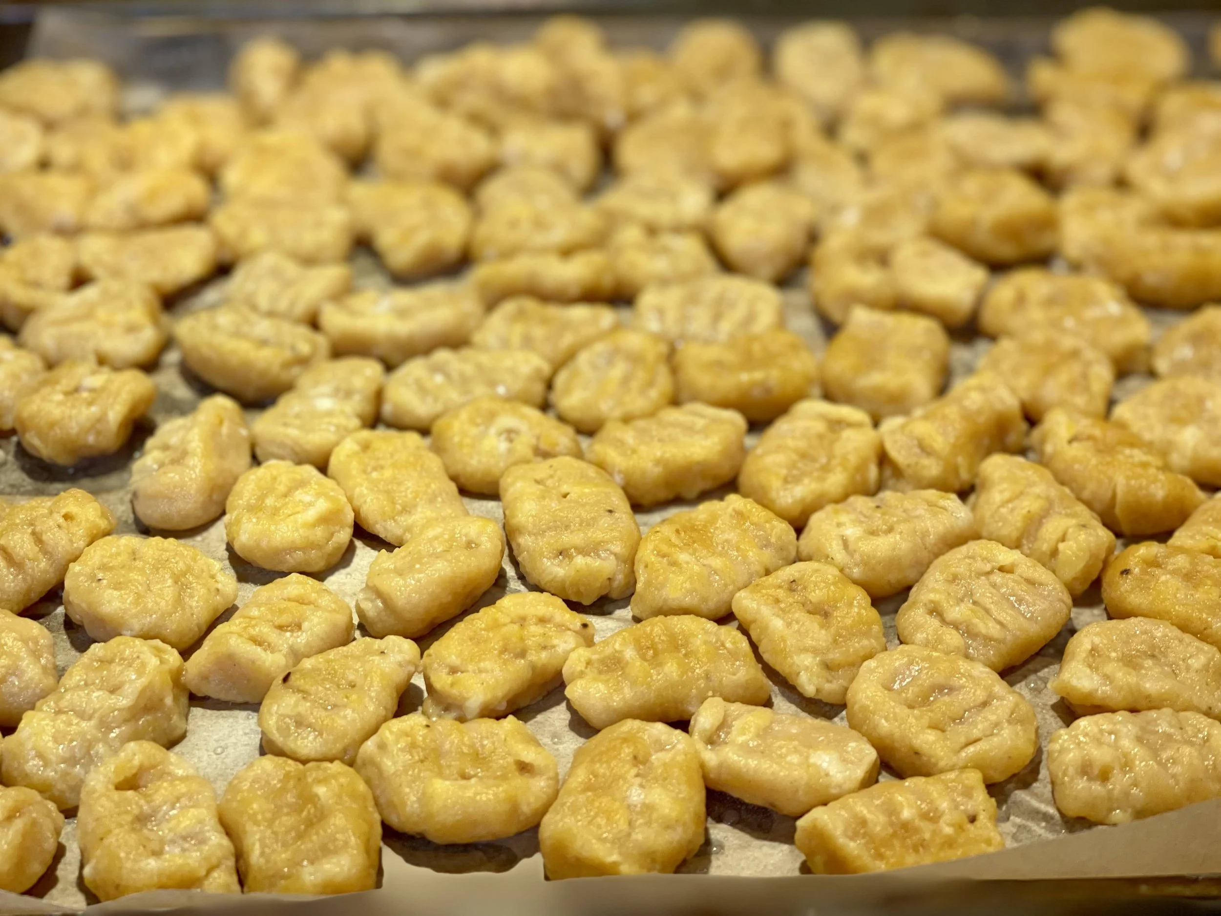 9. Use a slotted spoon or spider to transfer the cooked gnocchi to a dish or clean sheet pan.