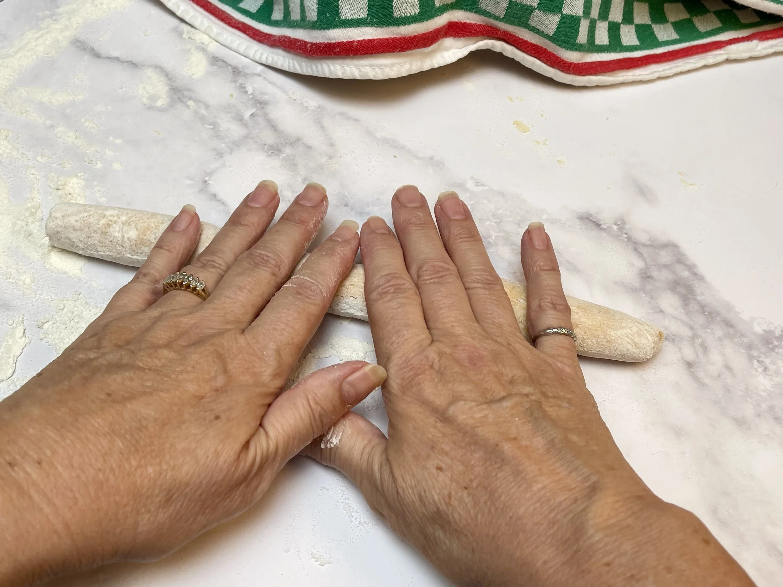 7. To obtain the ridges of classic gnocchi, roll each piece over the back of a fork or gnocchi board. The ridges will help hold the butter sauce.