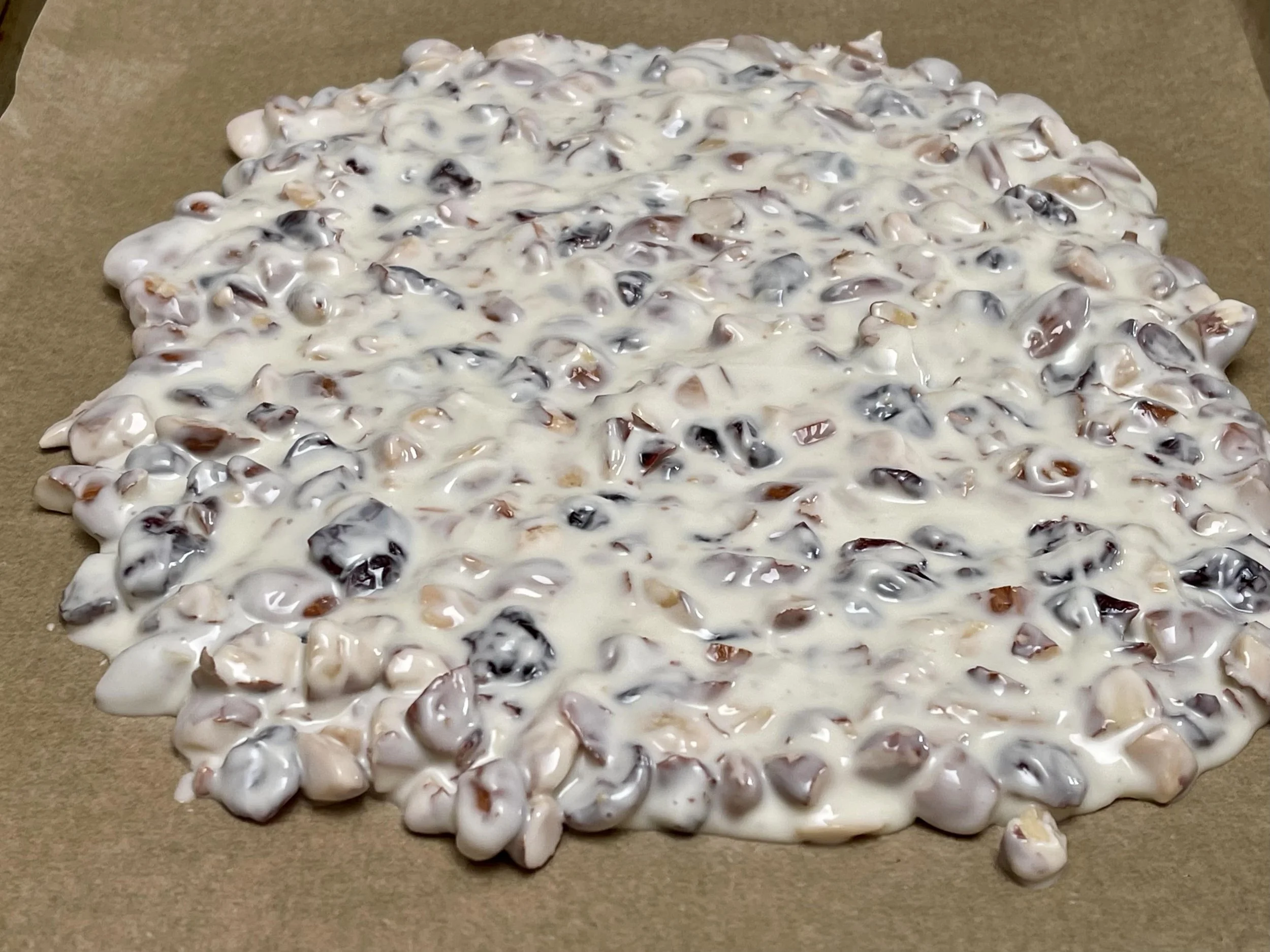10. After the white chocolate bark is set, you can cut it or break it into pieces and serve.